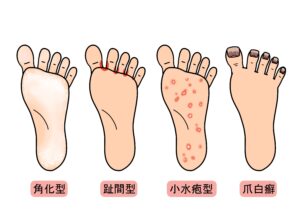 水虫にはいくつかのタイプがあり、症状の出方が異なります。代表的なものは次の4つです。