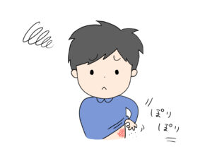強いかゆみを伴うことが多く、夜間に症状が強くなる傾向があります。掻くと症状が悪化することがあるため、できるだけ掻かないようにしましょう。